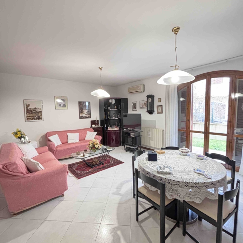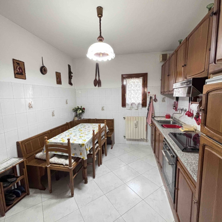 L’ingresso si apre su un ampio e luminoso soggiorno, seguito da una cucina abitabile e da un bagno di servizio. Dal piano terra è inoltre presente un comodo collegamento interno al garage, ideale per accedervi direttamente senza uscire di casa.